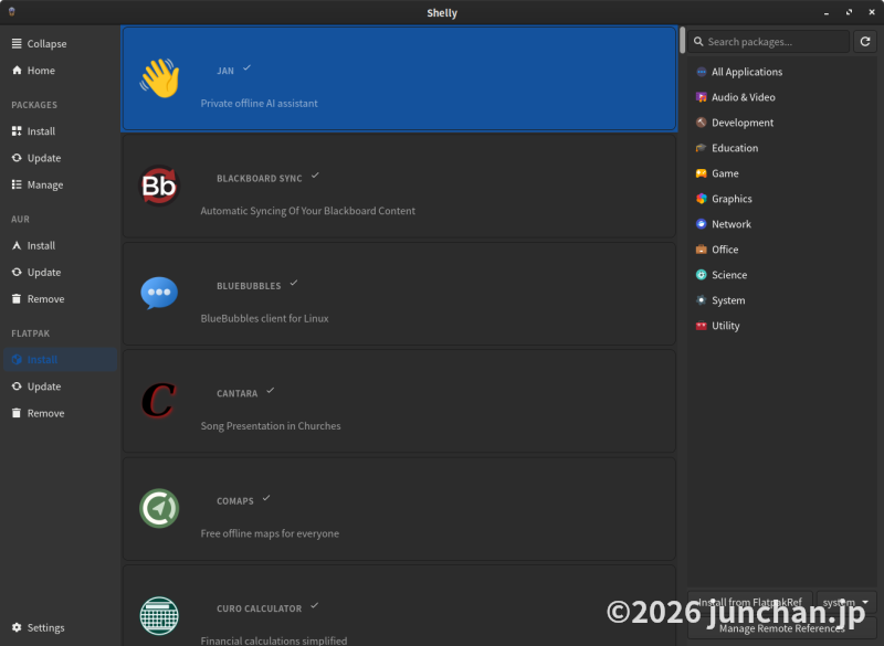 CachyOSのパッケージ管理GUIといえば、Shellyのようだ。